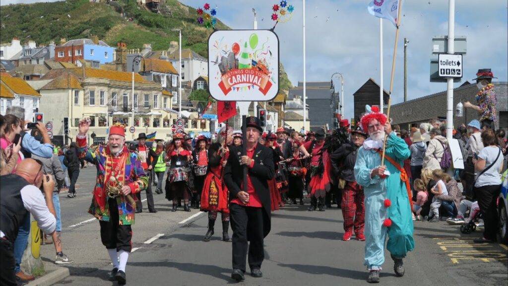 The carnival began in 1968. Old Town residents felt that the original Hastings Carnival should have included the Old Town in its route, so they created their own event. Over time, the Old Town carnival grew bigger and more popular, while the Hastings carnival declined and eventually stopped. As a parting gesture, the organisers gave the Carnival Queen the title “Miss Hastings.” In 2018, they rebranded the Carnival Court as the Sea Court and added a King, who holds the title “Mr Hastings.”